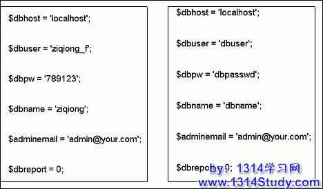 右边为新版本论坛的config.inc.php文件的数据库信息。