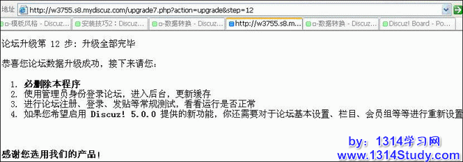 至此,Discuz!4.1 - Discuz!5.0 升级成功!现在您可以在后台开启您的论坛让它运行了!