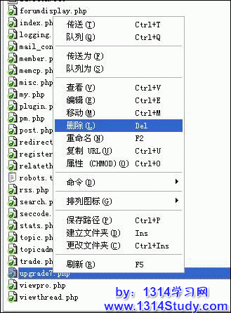1、删除服务器上的升级程序 upgrade7.php 。如图 15 所示: