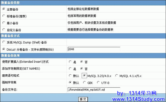 后台备份或使用phpmyadmin都可以;(具体备份的方法请参考“论坛搬家详解”图文说明),如图 4 所示: