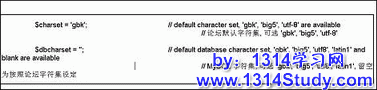 在配置 config.inc.php 文件时需重视的一点就是关于字符集的设定问题。charset 为论坛默认的字符集,您下载了哪个版本的论坛相对应的字符集就是哪个,比如你下载的 Discuz!5.0.0_SC_UTF8 ,那么你的论坛字符集(即 charset )就是 UTF8 ;而 dbcharset 为论坛数据库的字符集(即 MySQL 的字符集),也就是在服务器安装的 MySQL 的字符集,如果您的服务器上安装的 MySQL 的字符集为latin1,那么在配置 config.inc.php 时您就得将dbcharset 填写为latin1。到此,相信很多朋友已经明白自己的论坛为什么会出现乱码的问题了,原因就是没有设置正确的字符集,只要按照上面的讲解设置相信您的论坛将不会再有乱码问题。如图 6 所示: