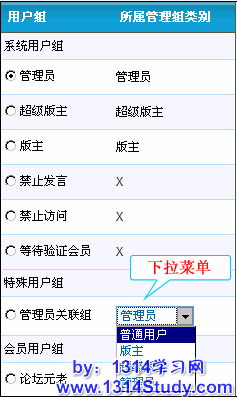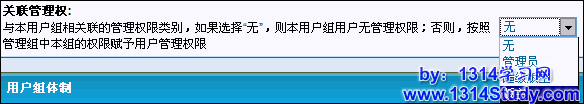 这里大家需要注意的是公众用户组不能关联管理组。反过来说就是如果您想把您的某个特殊用户组关联到管理组,那么这个特殊用户组就必须是非公众用户组。这样的机制主要是为安全考虑的,有兴趣的朋友可以多研究下。