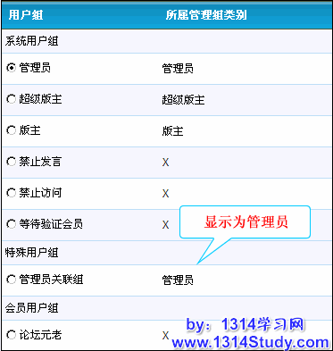非公众用户组:当用户组设置为“非公众用户组”时,无论是以主用户组的形式,还是以扩展用户组的形式,均只能由管理员手工将用户加入本组。