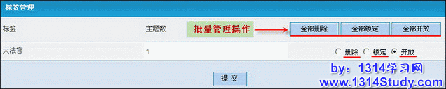 在这里搜索某一个标签,进入如图 2 所示的管理标签页面,在这里可以进行“删除”、“锁定”和“开放”管理操作。