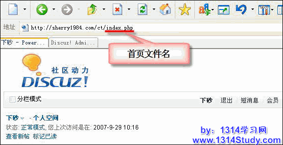 备注:可以设置为板块的链接或者其他的文件名,例如:http://sherry1984.com/ct 首页文件名设置为forum-3-1.html或者forumdisplay.php?fid=3,那么打开http://sherry1984.com/ct直接跳转到http://sherry1984.com/ct/forumdisplay.php?fid=3页面