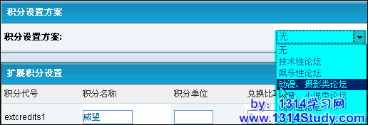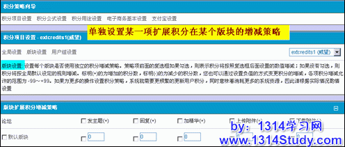 版块设置:设置某一种扩展积分在某个版块的积分策略。