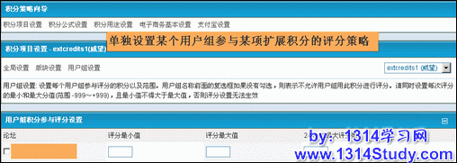用户组设置:设置某个用户组参与某一种扩展积分的评分策略。