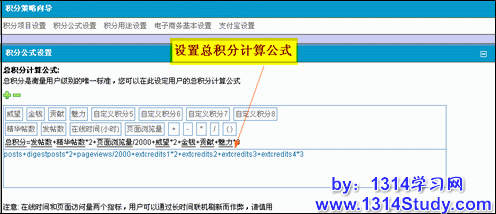 积分公式设置,设置站点的总积分公式,如下图: