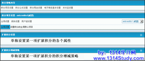 全局设置:设置某一种扩展积分的基本属性和积分策略。
