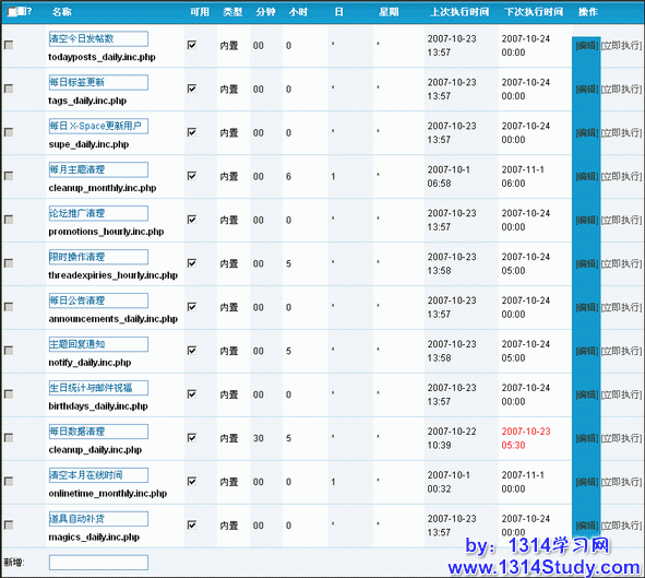 Discuz!自带12项计划任务,如下图所示: