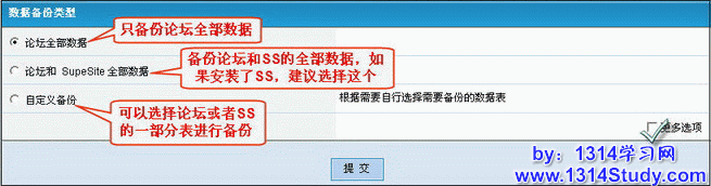 适用情况:安装了 SupeSite 的论坛备份,无特殊情况建议全部备份论坛和 SupeSite 数据。
