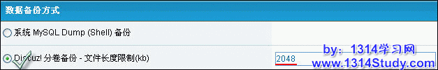 推荐选择“Discuz! 分卷备份”,“文件长度限制”最好不要超过默认的“2048 k”,如图 4 所示: