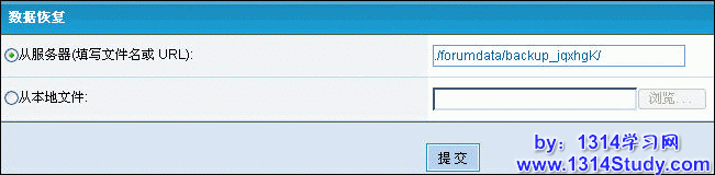 推荐“从服务器”恢复,如果备份文件在本地可以将备份文件上传到 ./forumdata/backup_xxx 目录里进行恢复。