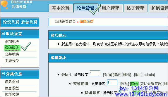 系统设置 -> 论坛管理 -> 编辑论坛,如图 1 所示: