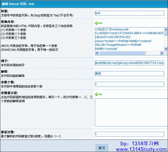 下面讲解一下新增 Discuz! 代码的方法:(以新增一个名为 test 的 Discuz! 代码为例做演示)