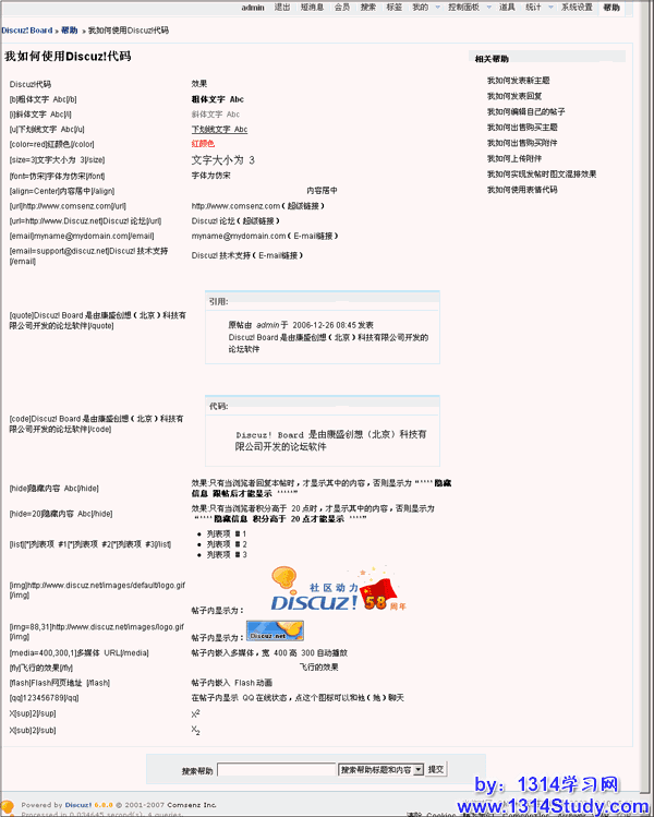 其他 Discuz! 代码的启用方法同上。
