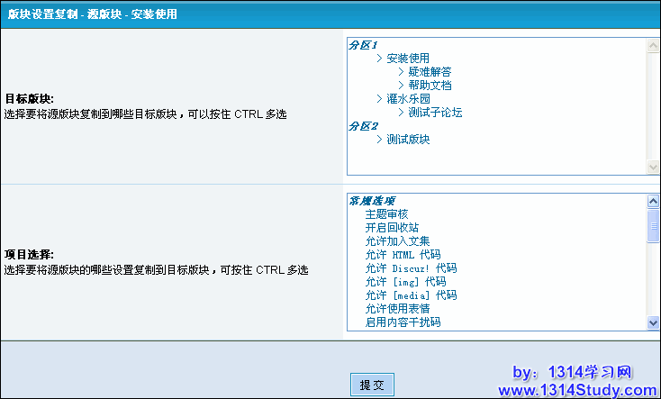 上图中点击“版块设置复制”进入如图 2 所示的界面: