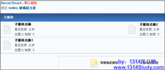 选择“是” 将不显示本版块的主题列表、发帖按钮等等,类似于一个分类。效果如图 11 所示:
