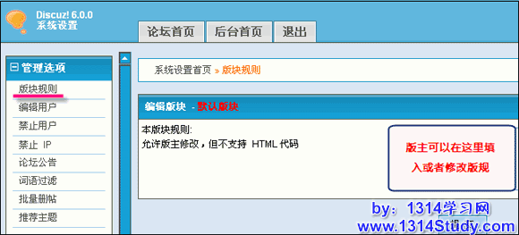 8.本版块规则:显示于主题列表页的当前版块规则,支持 HTML 代码,留空为不显示。