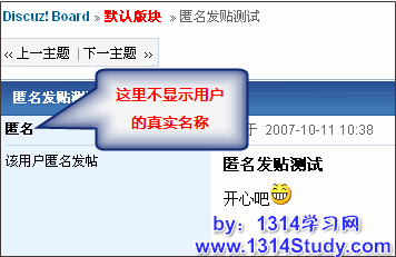 是否允许用户在本版匿名发表主题和回复,只要用户组或本版块允许,用户均可使用匿名发帖功能。效果如图 25 所示: