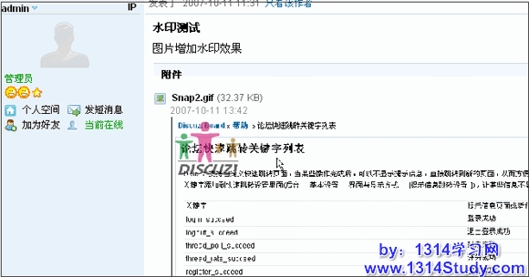 注意:如果选择“否”按照系统默认设置决定是否添加水印,即必须在论坛后台->基本设置->附件设置->开启了水印后才会有效。