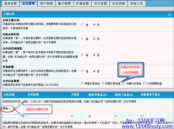 设置是否在本版块启用主题分类功能,您需要同时设定相应的分类选项,才能启用本功能