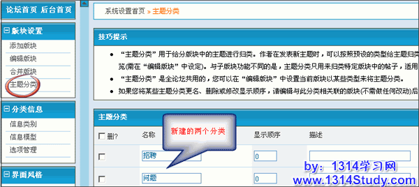 注意: 本功能必须“启用主题分类”后才可使用并会加重服务器负担