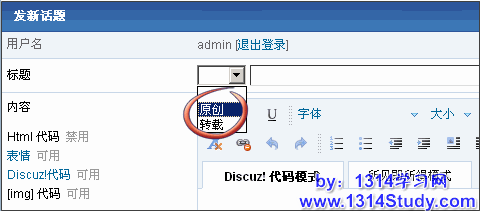 开启主题分类后,当用户发新贴子的时候就会有如图 32 所示的效果: