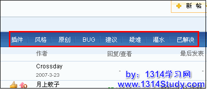 如果选择“是”,用户将可以在本版块中按照不同的类别浏览主题。效果如图 34 所示:
