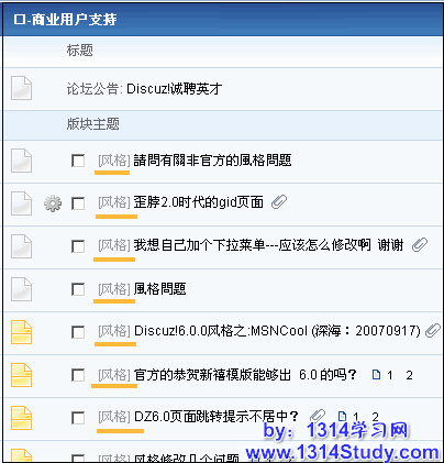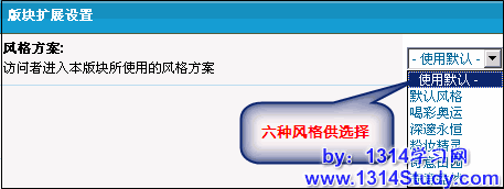 访问者进入本版块所使用的风格方案,默认有6种风格供选择。效果如图 9 所示: