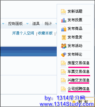 设置是否在发帖下拉菜单中显示那些分类信息模型,效果如图 36 所示: