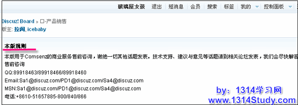 7.版块简介:将显示于版块名称的下面,主要是对本版块的简短描述。效果如图 6 所示: