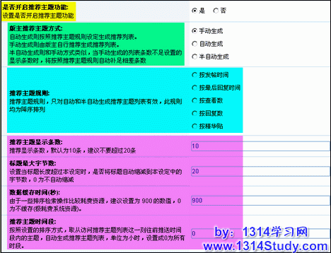 按照设置的排序方式,取从访问推荐主题列表这一刻往前推送时间段内的主题,自动生成推荐主题列表,单位为小时,设置成0为所有时段。如图 1 所示: