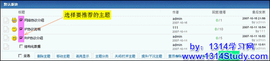 1、如下图所示,首先选择需要推荐给会员的帖子,然后点击“推荐主题”。