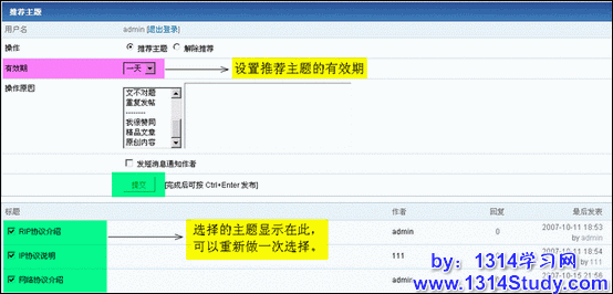 在此可以取消推荐的主题,注意:这里不是删除帖子,是取消推荐主题。