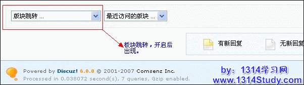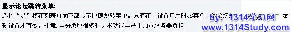 这个需要注意的有一个细节就是: 必须把 显示论坛跳转菜单 开启。
