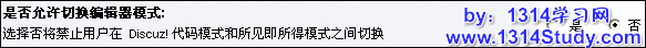 选择否将禁止用户在 Discuz! 代码模式和所见即所得模式之间切换