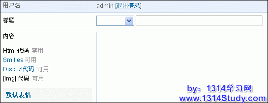 选择了否之后,那么在发帖和回复的编辑器就无法看到Discuz! 代码和模式见即所得模式的按钮了的。如图 13 所示: