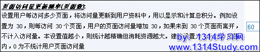 这个值建议设置为60,用户在登录状态下每浏览一个页面就是自动累积加一,当加到大于该设置的值 就更新到会员的资料表上去。