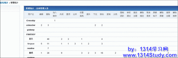论坛管理工作统计可以使管理员了解版主等管理人员的工作状况。注意: 本功能会轻微加重系统负担