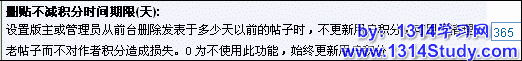 设置版主或管理员从前台删除发表于多少天以前的帖子时,不更新用户积分,可用于清理老帖子而不对作者积分造成损失。0 为不使用此功能,始终更新用户积分