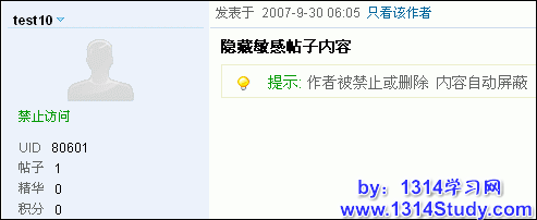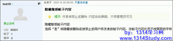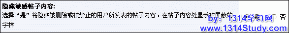 选择“是”将隐藏被删除或被禁止的用户所发表的帖子内容,在帖子内容处显示被屏蔽的字样