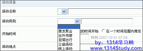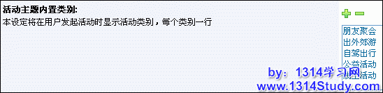 这个填写好后,在发表活动主题的时候,那么就有这些现成的活动类别可以选择