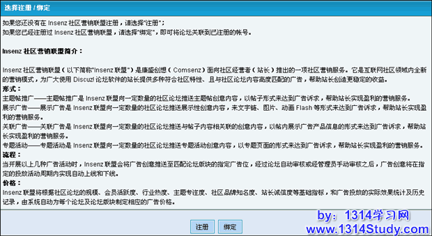 如果未注册或绑定社区营销Insenz,会提示你注册绑定,如图 2 所示: