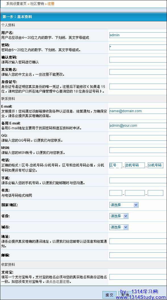 如果你还没有社区营销Insenz的帐号,那点注册按钮注册一个吧,如果已经有了帐号,你只需绑定到你的帐号上就可以了,不用反复注册。点注册按钮,会看到如图 3、4 所示,根据说明填写相关信息即可完成社区营销的注册过程。