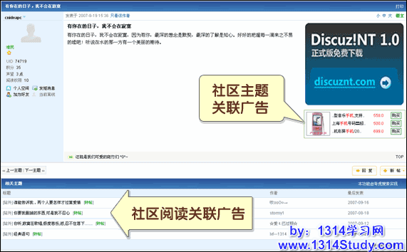 社区关联广告是指,Insenz按照定向社区或论坛版块的主题不同,匹配不同广告主信息的一种解决方案。