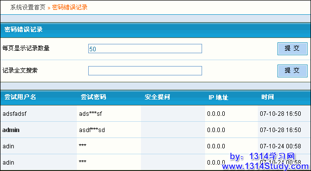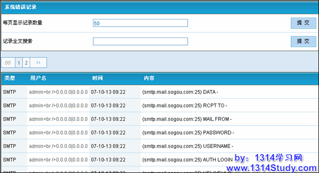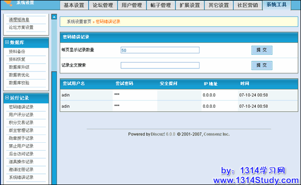 系统错误记录记录着论坛在运行状态中,出现的MySQL的错误,发邮件错误,ftp远程附件上传错误。这个记录可以帮助我们了解论坛的运行情况。这个也可以搜素需要的记录。