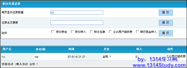 注意:后台显示的上月和当月的记录,其他月的记录还是存储在文件里面,虽然没有删除,但是后台不显示。如果当月的对应的记录项大于2m,那么显示的只是当月的所有记录。所有的记录除积分交易记录,道具操作记录和邀请注册记录是存储在数据库里面的之外,其他的都是存储在文件里面的(./forumdata/logs/下的文件)。