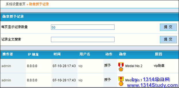 勋章记录记录着所有的勋章的颁发和收回的信息。同样,这个也是可以全文搜索您需要的勋章颁发/收回记录的。
