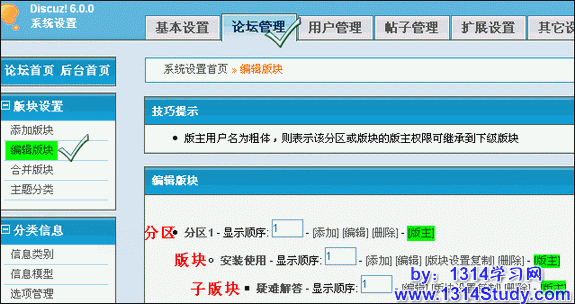 (1)默认将本分区版主的权力继承到下级版块及其子版块;